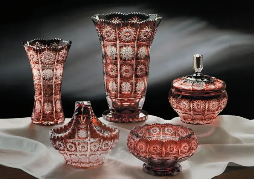 Хрусталь – это не просто стекло. Он содержит в себе свинцовый оксид, что придает ему исключительную прозрачность, блеск и звучность, именно этот компонент позволяет граням резки на солнце сиять ярче бриллиантов. Изысканные и разнообразные формы, изящество шлифа, декора и огранки делают предметы из хрусталя поистине завораживающими глаз.