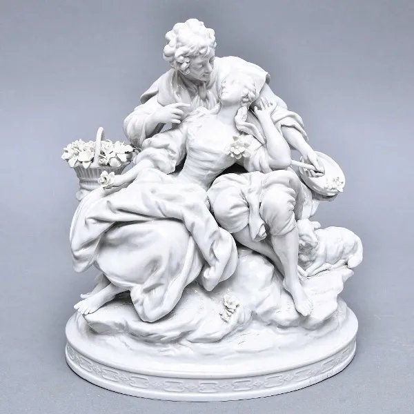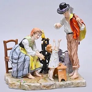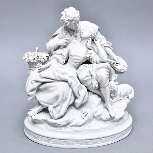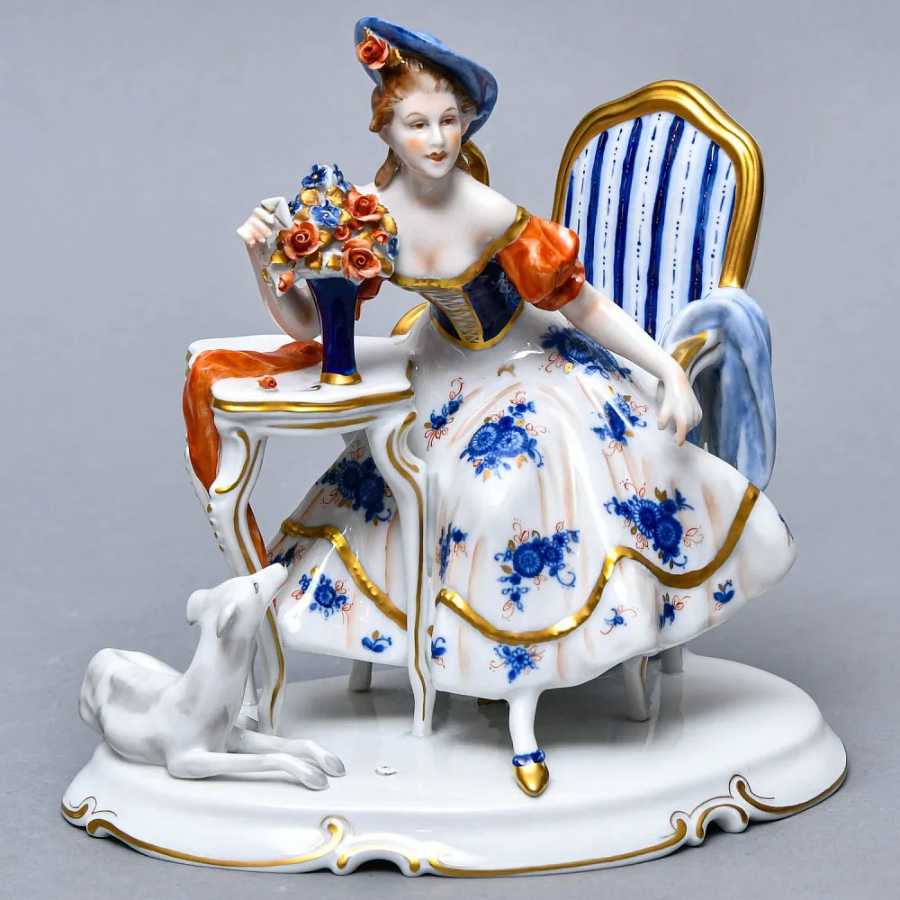 Фарфоровая фигурка "Пишущий мальчик" в прекрасном коллекционном состоянии для предмета столь почтенного возраста, присутствует небольшая потертость позолоты на основании предмета.