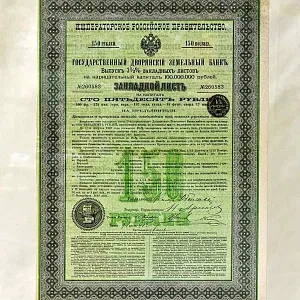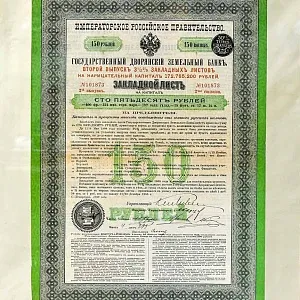 Оригинальная Антикварная Ценная Бумага «Закладной Лист на 150 рублей на предъявителя» в прекрасно подобранном, стильном оформлении, смотрится очень эффектно и антуражно, порадует собой любого любителя старины! В результате бережного хранения, состояние панно очень хорошее. На выбор она станет Прекрасным украшением в Вашем доме, или Достойным экспонатом в любой коллекции!!! или же, Хороший подарок для знакомых и близких!!!