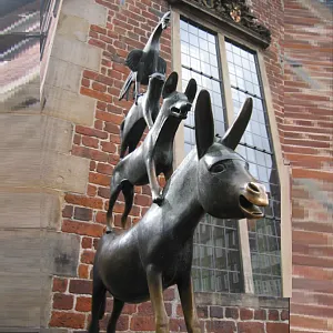 Оригинальная Коллекционная Авторская фарфоровая композиция «Бременские музыканты», мануфактура Hutschenreuther (Хутчеройтер), Германия, атрибуция по клейму 1955-1968 годы выпуска. Автор скульптуры Карл Тюттер (Karl Tutter). Невероятно роскошная и пронзительная статуэтка. Белоснежный фарфор, ручная полихромная роспись, имя автора K.Tutter в тесте и клеймо мануфактуры надглазурно на дне фигурки. Всё сделано в лучших традициях Hutschenreuther - высочайшего качества.