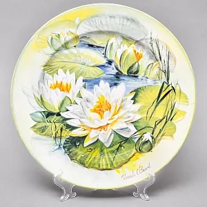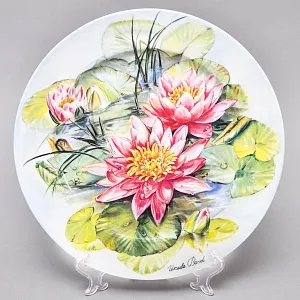 Тарелка «Водная лилия Розовая сенсация» имеет персональный номер 01.394 и занесена в международный каталог BRADEX (В этот каталог попадают только ценные экземпляры тарелок, которые являются высокохудожественными и редкими по изготовлению). Смотрится тарелочка очень эффектно и антуражно. Необыкновенно хорошо вписывается в интерьер, всегда привлекает взгляды окружающих. Прекрасное состояние без сколов и трещин и потертостей.