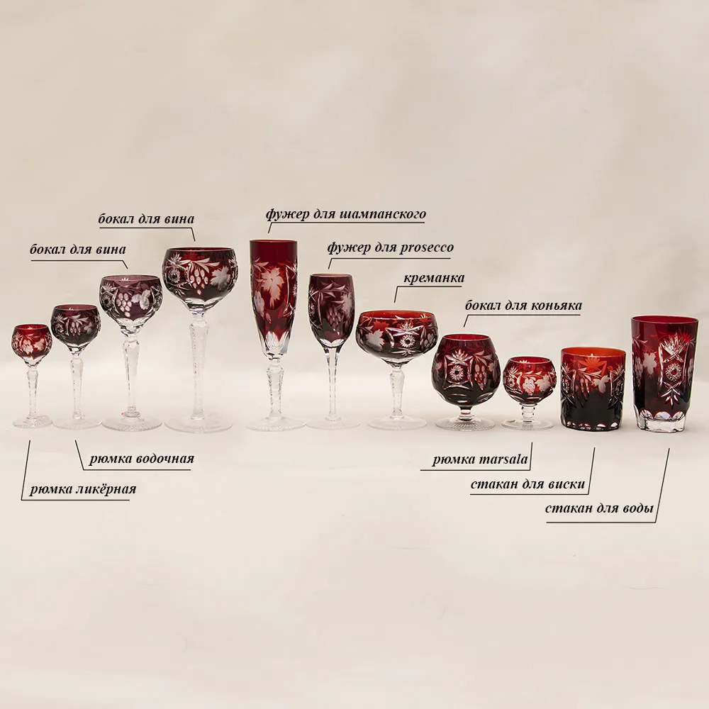 Настоящий высококачественный свинцовый хрусталь с содержанием окиси свинца не менее 24% (PbO 24% - мировой стандарт), такое содержание окиси свинца увеличивает показатель преломления, что позволяет хрусталю играть всеми гранями на солнце подобно драгоценным камням. Великолепная работа немецких мастеров, изысканный дизайн, высочайшее качество нанесение рисунка граней. Классическая форма фужеров, подходит практически для любой сервировки стола, они станут его достойным украшением, всегда привлекут внимание окружающих.