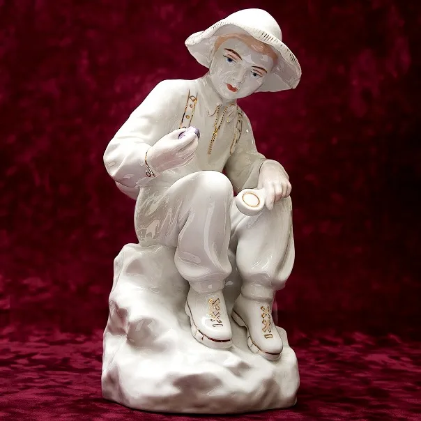 Большая Интерьерная Фарфоровая статуэтка родом из СССР "Юный геолог", Полонский завод художественной керамики (Полонне ЗХК), середина ХХ века. Фарфор, ручная роспись, позолота. Автор В.И. Щербина.
