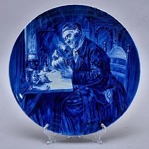 Декоративная Коллекционная тарелка - настенное блюдо "Ожидание", по клейму можно точно определить, что тарелка изготовлена в период с 1969 по 1979 года, именно в этот временной отрезок Бельгийская мануфактура BOCH производила декоративные тарелки для ROYAL SPHINX Holland DELFTs (Делфт), Голландия. Ручная печать, традиционные бело-голубые тона, высочайшее качество.