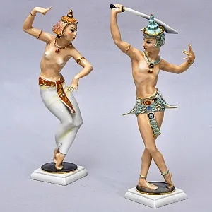 Прекрасная Большая Авторская Коллекционная фарфоровая скульптурная композиция известногго немецкого скульптора-художника Карла Тюттера (Karl Tutter) «Майский Танец» - «May Dance» или по другому «ТРИ ПОДРУЖКИ - Хоровод», мануфактура Hutschenreuther (Хутченройтер), Германия, атрибуция по клейму 1955 - 1968 годы выпуска. Белоснежный фарфор, глазуровка, 100% ручная работа. Всё сделано в лучших традициях Hutschenreuther - высочайшего качества.