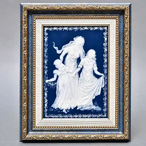 Белизна фарфора служит идеальным холстом для виртуозной работы декоратора. По краю изделий, словно невесомые лазурные ленты, струятся изящные синие линии, поддерживающие пышные цветочные гирлянды. В растительном орнаменте царит гармония: благородные розы тёплого оранжево-терракотового оттенка соседствуют с миниатюрными васильками и ажурной зеленью папоротниковых листьев. Узор, напоминающий о летних садах и дворцовых празднествах, придаёт набору торжественность, не лишая его уюта.