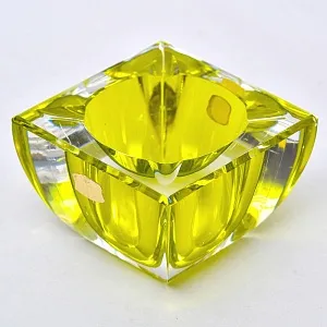 Представленная Вашему вниманию пепельница из цветного хрусталя, относится к периоду конца 60 -х годов прошлого века. Эксклюзивный дизайн, ручная работа, настоящий высококачественный свинцовый хрусталь с содержанием окиси свинца не менее 24% (PbO 24% - мировой стандарт), такое содержание окиси свинца увеличивает показатель преломления, что позволяет хрусталю играть всеми гранями на солнце подобно драгоценным камням, изысканное сочетание прозрачно-белого и нежно изумрудного цветов, изящные грани резки, за счет плотности хрустальной массы вещица достаточно тяжёлая, вес - 2,6 кг. Пепельница изящна и брутальна одновременно, стать, стиль - всё при ней. Необыкновенно хорошо выглядит практически в любом интерьере, всегда привлекает взгляды окружающих, при этом многофункциональна и удобна в применении.