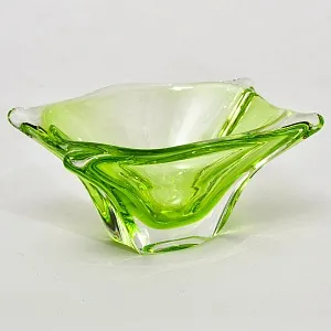 Представленная Вашему вниманию Вазочка из цветного хрусталя нежно зеленого цвета относится к периоду конца 60 -х годов прошлого века. Эксклюзивный дизайн, ручная работа, настоящий высококачественный свинцовый хрусталь с содержанием окиси свинца не менее 24% (PbO 24% - мировой стандарт), такое содержание окиси свинца увеличивает показатель преломления, что позволяет хрусталю играть всеми гранями на солнце подобно драгоценным камням, за счет плотности хрустальной массы вещица достаточно тяжелая, вес - 1,4 кг. Орешница хорошо выглядит практически в любом интерьере, всегда привлекает взгляды окружающих, при этом многофункциональна и удобна в применении.