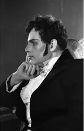 Коллекционная Фарфоровая статуэтка «Артист Норцов в роли Евгения Онегина», Ленинградский Фарфоровый Завод им.М.В.Ломоносова (ЛФЗ), середина ХХ века, высший сорт. Скульптор - Илья Львлвич Слоним, художник - Елизавета Николаевна Лупанова. Фарфор, надглазурная полихромная роспись.