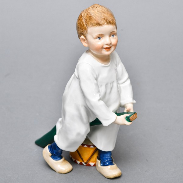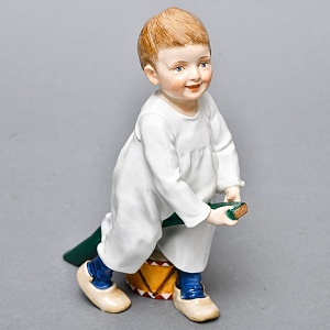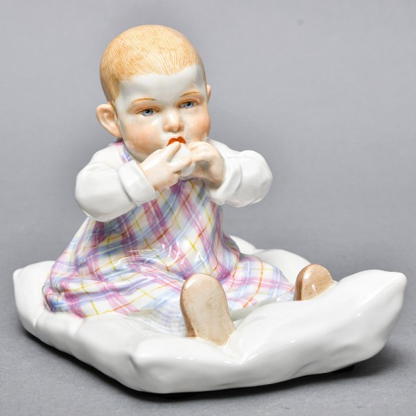 Декоративная Коллекционная Фарфоровая статуэтка «Ребёнок сидящий на подушке» из серии «Дети Хеншеля» / Hentschel Kinder, знаменитая фабрика Мейсен / Meissen, Германия, первая половина ХХ века. Высококачественный фарфор, ручная полихромная роспись, исключительно ручная работа, клеймо синего цвета подглазурно.