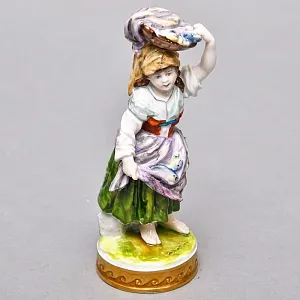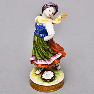 Оригинальная Винтажная Коллекционная фарфоровая статуэтка «Маленькая Танцовщица или Танец - Девочка собирает монеты», Германия, фабрика VOLKSTEDT - ФОЛКСТЕД, середина прошлого века. Фарфор, роспись, позолота, 100% ручная работа. Настоящая находка для истинного коллекционера или ценителя фарфора! Представляет коллекционный интерес!!