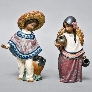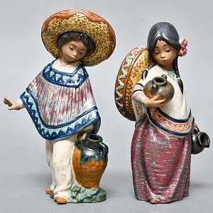 Коллекционная Фарфоровая скульптура «Девочка в сомбреро» - «Pepita with sombrero» или по другому «Пепита в сомбреро» производство Lladro ( Лядро ) серия Gres, Испания, художник José Puche, 1984 год. Тема "детство" весьма популярна в изобразительном искусстве вообще и в фарфоре в частности. Это особенная тема - это счастливое беззаботное детство, радость и веселье, восхищение и бесконечное мастерство. Кажется, что все тематические Лядровские работы "детство" - не просто фарфоровые фигурки, а живые герои забавного и очень милого сюжета. Фигурка «Пепита в сомбреро» - 100% ручная работа, фарфор Stoneware, полихромная роспись эмалью. Клеймо надглазурное синего цвета "Lladro. Hand Made in Spain". Безупречное качество, всё в лучших традициях Lladro.