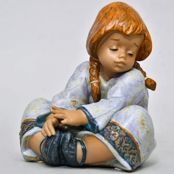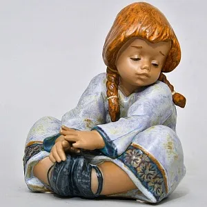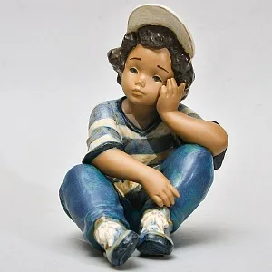 Очаровательная Коллекционная Фарфоровая статуэтка «Сидящий мальчик» или «Длинный день» - «Long Day» , Lladro серия Gres (Грес), Испания, художник Francisco Popole, статуэтка выпускалась в период с 1991 по 2013 годы. 100% ручная работа, фарфор Stoneware, полихромная роспись эмалью. Клеймо надглазурное синего цвета "Lladro. Hand Made in Spain. Daisa".