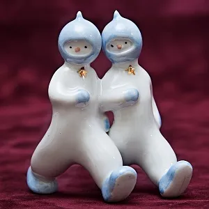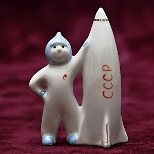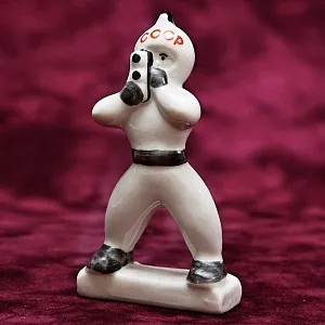 Декоративная Коллекционная Фарфоровая статуэтка «Космонавт - фотограф» или «Космонавт с кинокамерой» из знаменитой серии «Космонавты» родом из СССР, Киевский экспериментальный керамико - художественный завод, 60е годы ХХ века. Автор - Владислав Иванович Щербина.