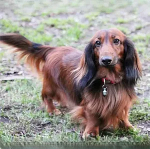 Коллекционная Фарфоровая статуэтка «Собака - Длинношерстная Такса» Германия, мануфактура Карл Энс / Karl Ens, первая половина ХХ века. Фарфор, глазурь, ручная полихромная роспись. Безупречное качество, всё в лучших традициях Karl Ens.