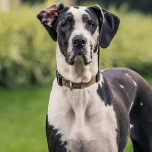 Фигура изображает датского дога в спокойной и естественной позе, собака лежит, как будто отдыхает после прогулки или дремлет. Плавные, гармоничные линии тела передают не только анатомическую точность, но и внутреннюю энергию животного, четко проработаны мускулатура, складки кожи, форма ушей, лап и хвоста.