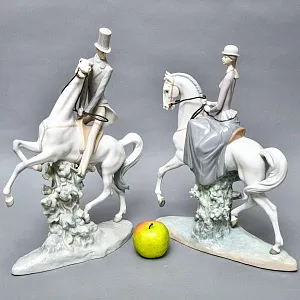 Фарфоровая интерьерная композиция «Всадник» или «Мужчина на лошади», Lladro (Лядро), Испания. Скульптор Fulgencio Garcia. Ограниченный тираж. Фигурка выпускалась в период с 1969 по 1985 годы. Прекрасная, стильная работа испанских мастеров,100% ручная работа, традиционная полихромная роспись, глазуровка. Клеймо надглазурное синего цвета "Lladro. Handmade in Spain".