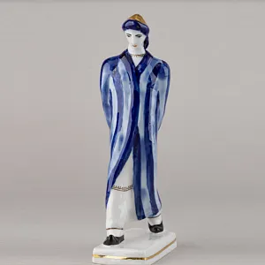 Скульптура «Юный электромонтер», изображающая шагающего молодого человека в ватнике и шапке-ушанке, перепоясанного цепью и с мотком провода на плече - это великолепная работа выдающегося мастера Советской школы фарфора, выполненная с необыкновенным мастерством, теплотой и любовью к материалу. Представляет коллекционный интерес!!! Очень хорошее состояние, без дефектов, сколов или трещин. На выбор: Прекрасное украшение в Вашем доме, или Хороший подарок для знакомых и близких, или Достойный экземпляр в коллекцию!