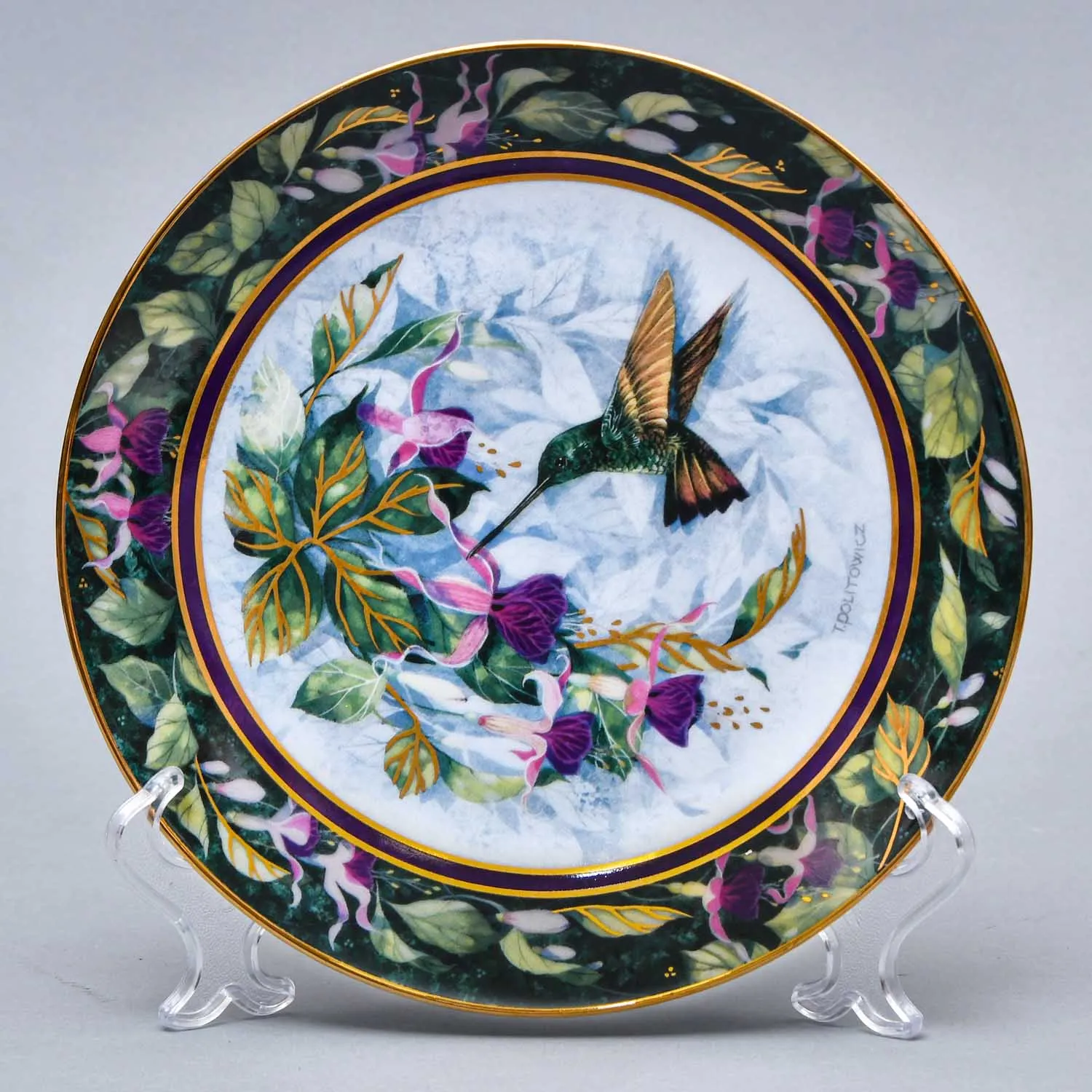 Оригинальная Декоративная Коллекционная тарелка "Белоухий колибри" - "The White-Eared Hummingbird" США, The FRANKLIN MINT, 80-е годы ХХ века, Фарфор, деколь, позолота, художник Teresa Politowicz.