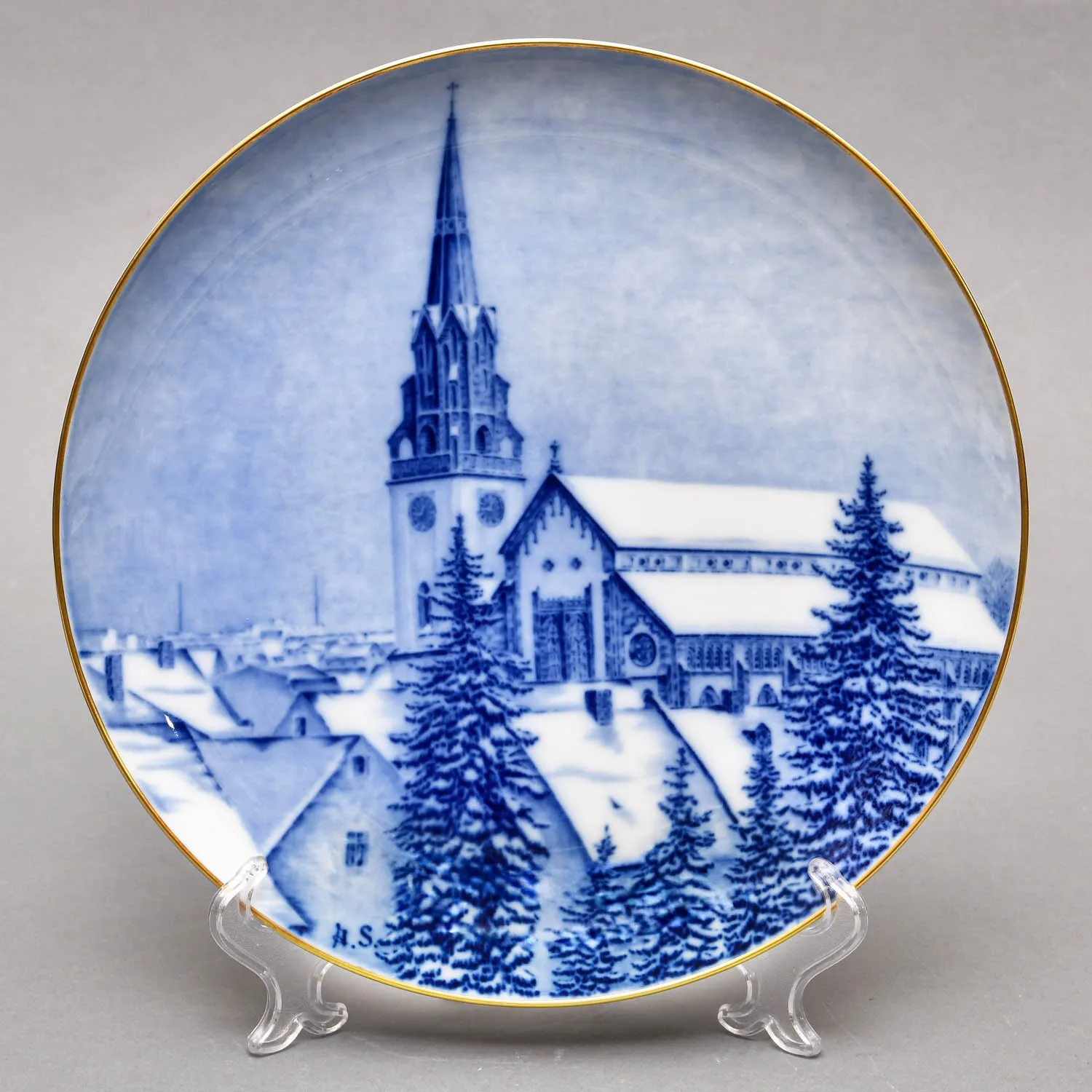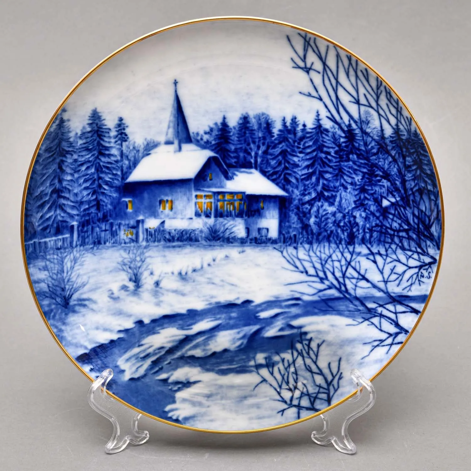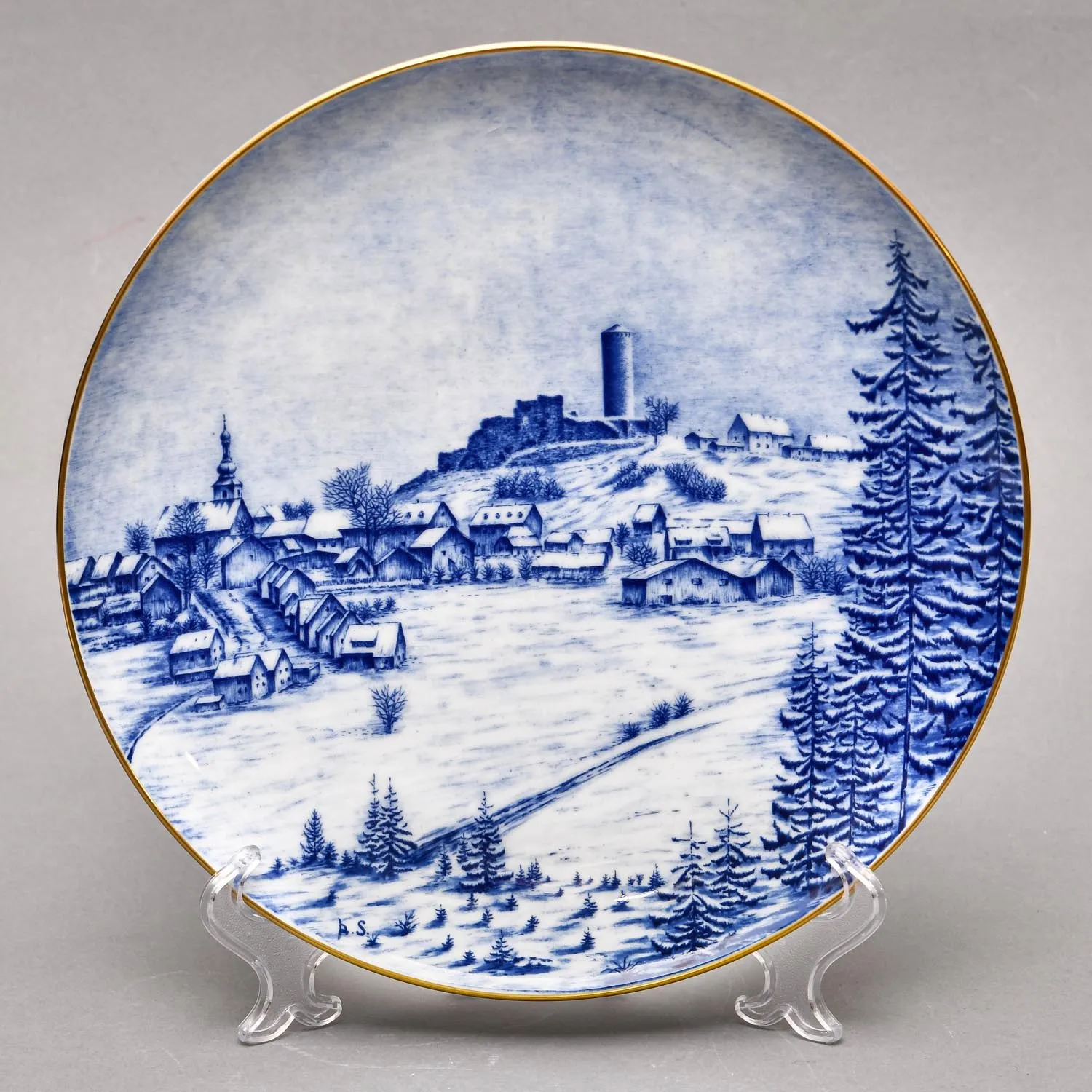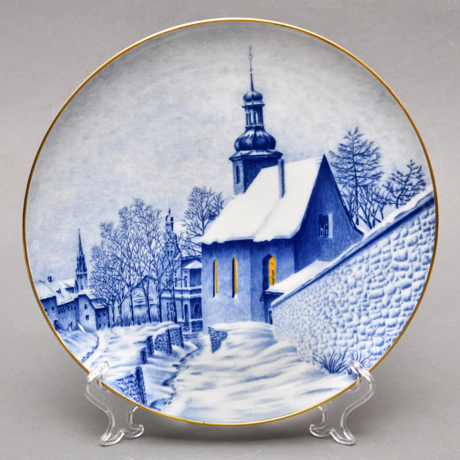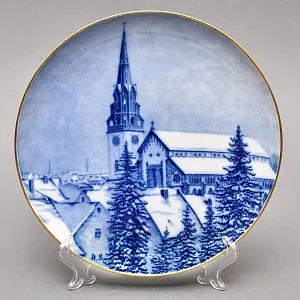 Декоративная Коллекционная Тарелка - Блюдо «Городской Собор зимой», Германия, мануфактура Hutschenreuther (Хутченройтер), 1979 год. Фарфор, деколь, позолота. Автор A.Schlegel.