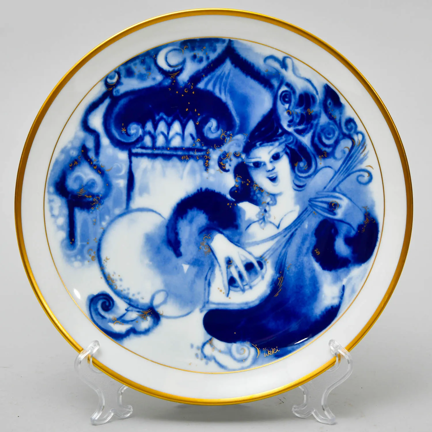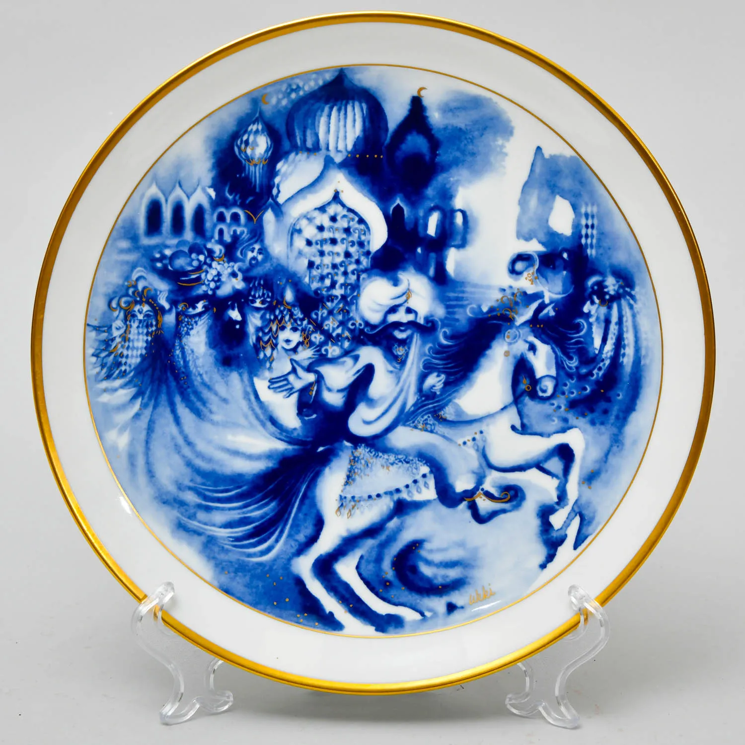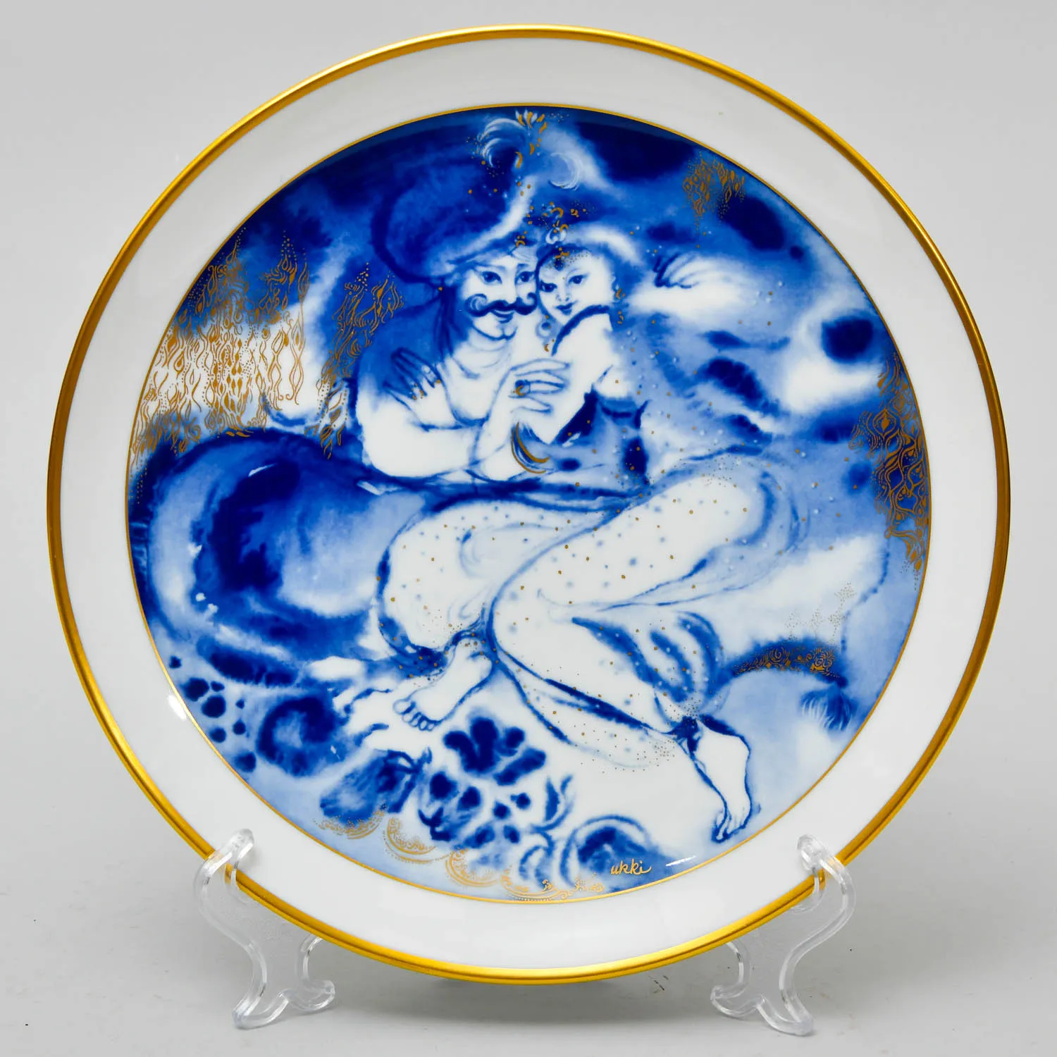 Декоративная, Коллекционная Тарелка - Блюдо из серии «1000 и Одна ночь» - «Сказки Шехерезады. Свидание» «Шахерезада» от самой знаменитой фарфоровой мануфактуры Германии MEISSEN / МЕЙСЕН - 1984 год. Художник Урри Уклея/Urri Ukleya. Диаметр тарелки - 25,5 см. Высочайшего качества - безупречный фарфор, оригинальная ручная роспись, благородный натуральный кобальт, позолота (настоящее 24-х каратное золото), всё сделано в лучших традициях знаменитой немецкой школы фарфора..