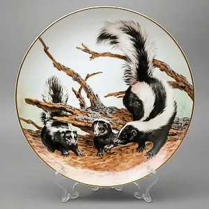 Оригинальная, Декоративная, Коллекционная тарелочка из серии "The Forest Year" - "Лесной Год" - «Racoons on an March Adventure» — «Еноты в Марте». Тарелка «Racoons on an March Adventure» олицетворяет «Март», а вся серия состоит из 12-ти тарелок, каждая из которых соответствует определенному месяцу года, так что коллекцию также можно назвать "Месяцы года". Ограниченный тираж, The Collection Studio Fine Porcelaine Англия — 1982 год. Художник John Franch.