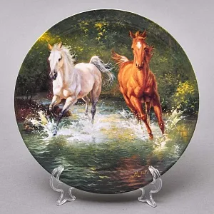 Тарелка «Скачки на лугу» имеет персональный номер и занесена в международный каталог BRADEX (В этот каталог попадают только ценные экземпляры тарелок, которые являются высокохудожественными и редкими по изготовлению). Смотрится очень эффектно и антуражно. Необыкновенно хорошо вписывается в интерьер, всегда привлекает взгляды окружающих. Прекрасное состояние без сколов и трещин. На выбор: Хороший подарок или Достойный экспонат в любую коллекцию!