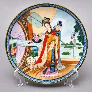 Винтажная Декоративная Коллекционная фарфоровая тарелка «Yuan-Chun» или «Китайская красавица и служанка», из потрясающей серии «Красавицы Красного Замка» - «The Beauties of the Red Mansion». Китай, производитель "Imperial Jingdezhen Porcelain", 1986 год. Автор Zhao Huimin. Ограниченный тираж, оригинальная коробка, сертификат.