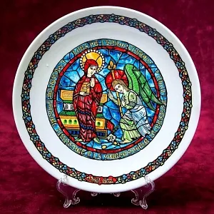 Оригинальная Декоративная Коллекционная Тарелка «Благовещение» - «L'Annonciation» из коллекции «Рождественские Витражи», Франция, Лиможский фарфор, мануфактура Henri d'Arceau-Limoge - 1982 год. Фарфор, деколь, ограниченный тираж. Диаметр тарелки - 21 см.