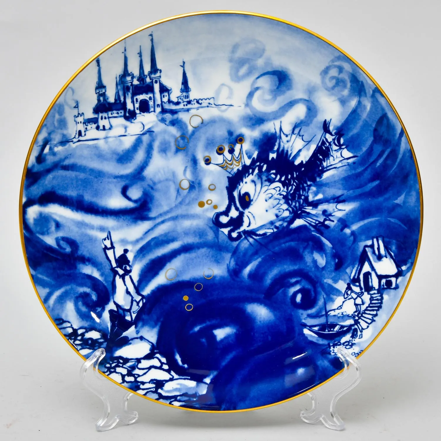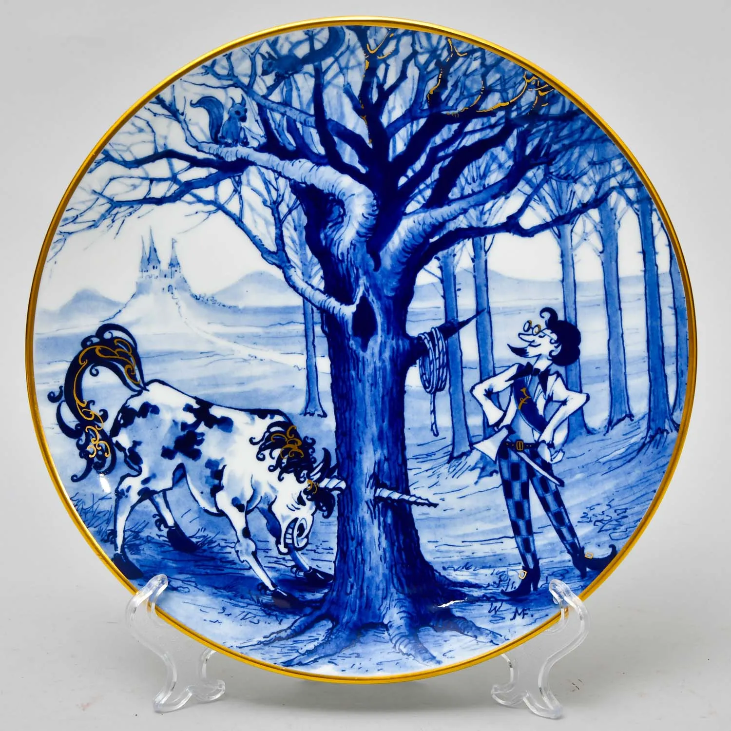 Декоративная Коллекционная Тарелка - Блюдо из серии «Сказки мира» - «РУМПЕЛЬШТИЛЬЦХЕН» от самой знаменитой фарфоровой мануфактуры Германии MEISSEN / МЕЙСЕН - 1991 год. Высочайшего качества - безупречный фарфор, оригинальная ручная роспись, благородный натуральный кобальт, позолота (настоящее 24-х каратное золото), всё сделано в лучших традициях знаменитой немецкой школы фарфора.. Диаметр тарелки - 26 см.