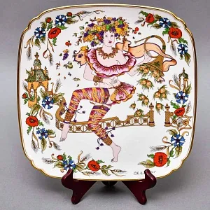 Декоративная Коллекционная Тарелка - Настенное Блюдо «Осень» из коллекции "Времена года," Германия, мануфактура Hutschenreuther (Хутченройтер) - 1978 год. Специальный выпуск посвященный 200 летию мануфактуры. Фарфор, деколь, позолота, оригинальная коробка. Автор Ole Winter. Ограниченный тираж, всего было выпущено 10 000 экземпляров, наша тарелочка имеет порядковый номер 2695.