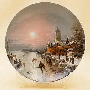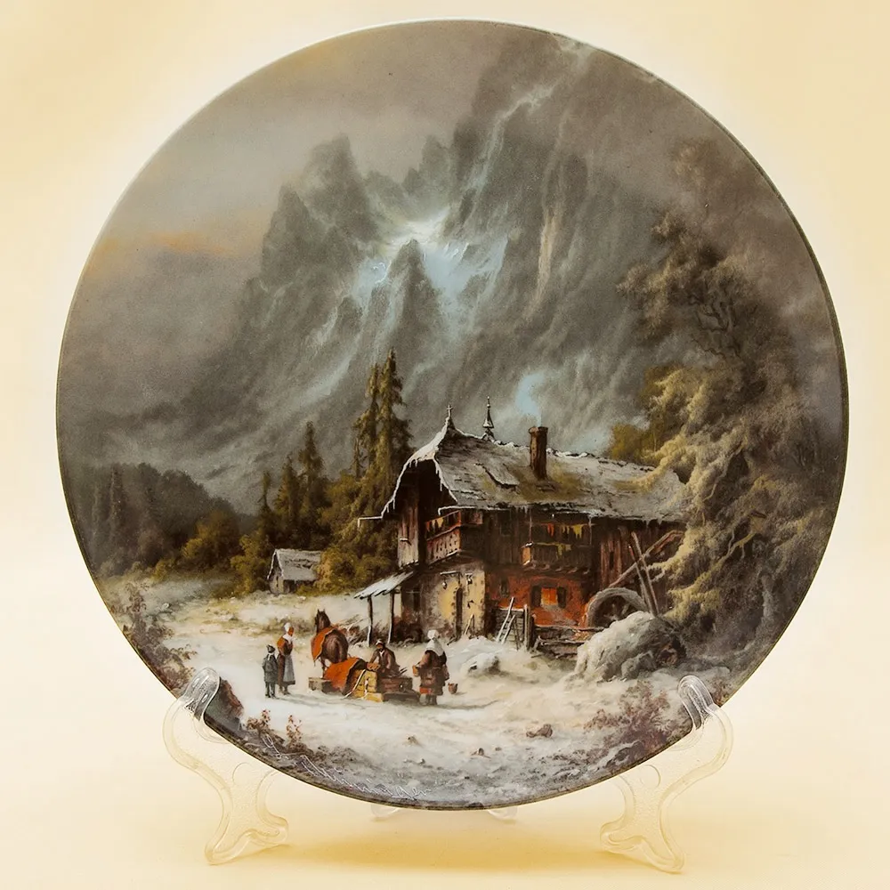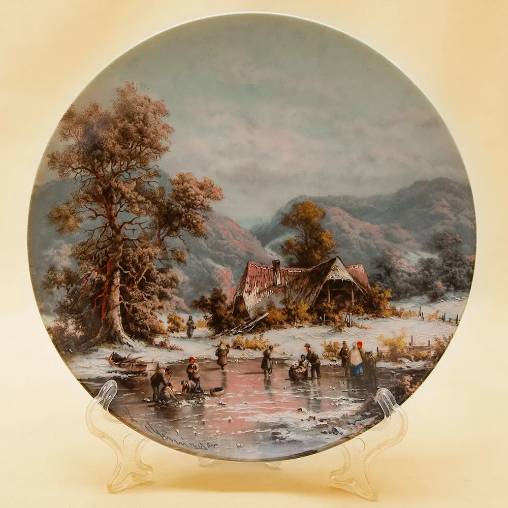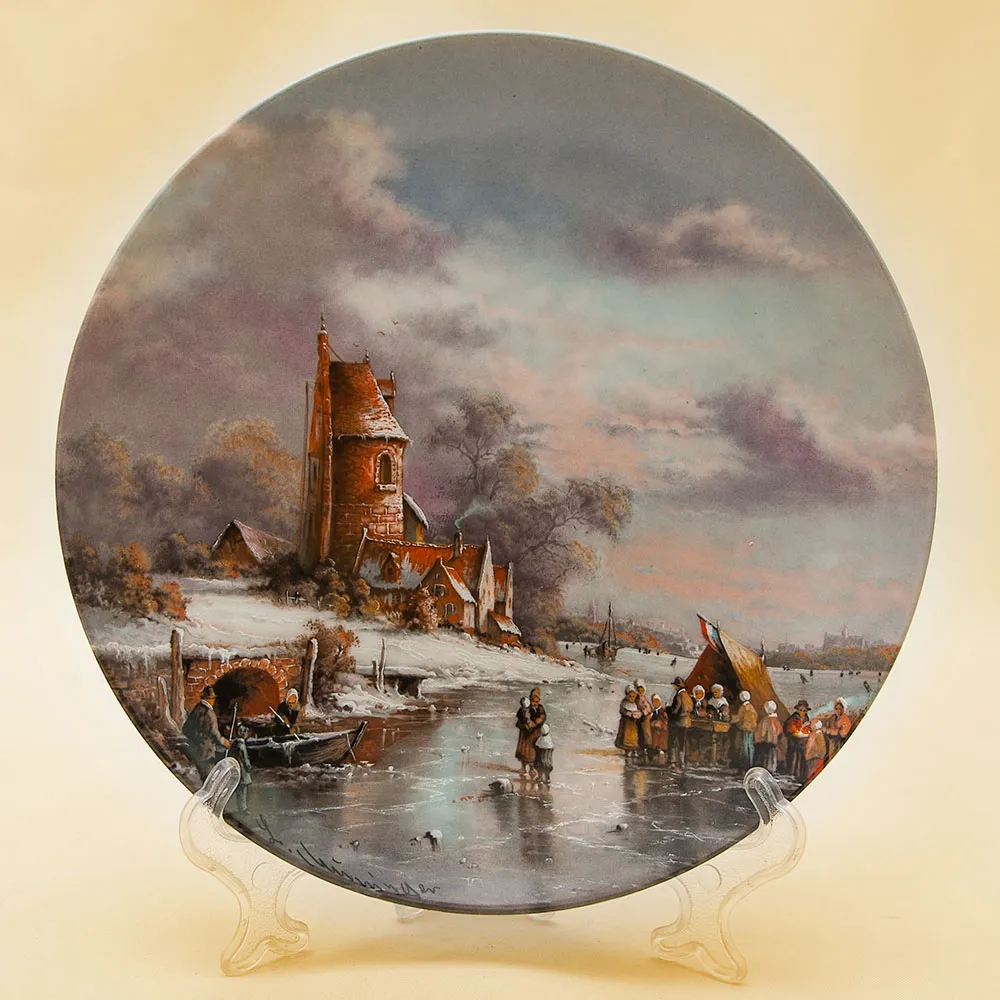 Оригинальная, Декоративная, Коллекционная, номерная тарелка «Отдых после долгого дня» из серии «Романтичные зимние пейзажи» — «Romantische Winterimpressionen» немецкой фарфоровой мануфактуры Furstenberg - 1988 год, работа знаменитого художника Людвига Муненгера (Ludwig Muninger), ограниченный тираж. Диаметр тарелки - 19,5 см. Чудесная, прекрасно оформленная, очень яркая и красивая тарелка, белоснежный немецкий фарфор, качественная деколь с ручной подрисовкой, всё сделано в лучших традициях Furstenberg.