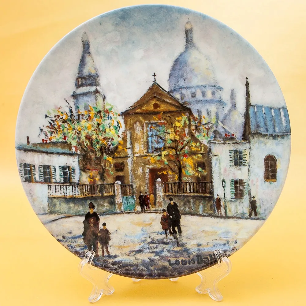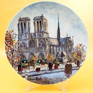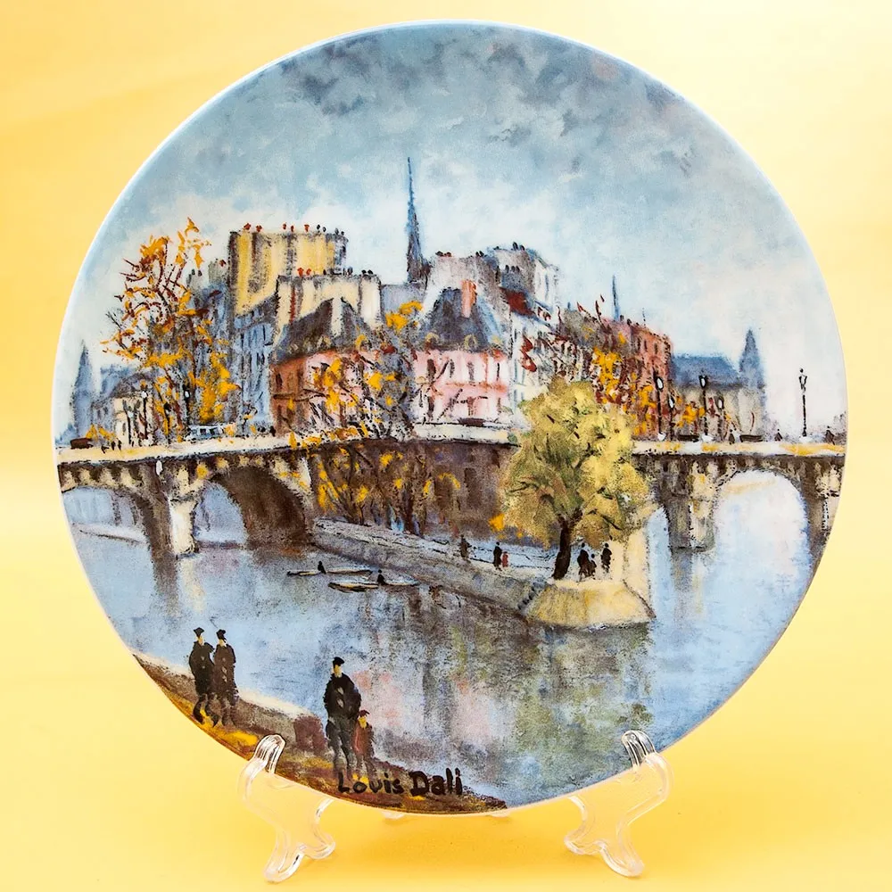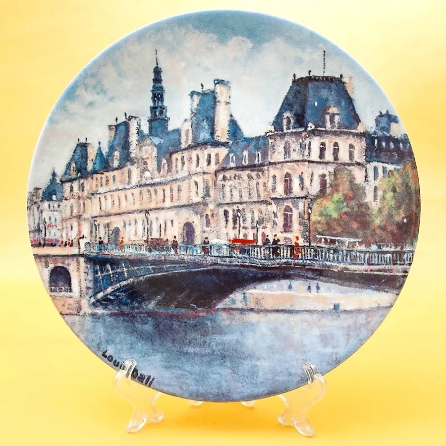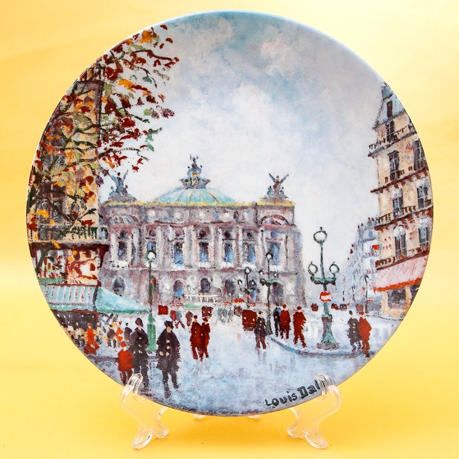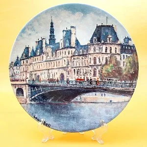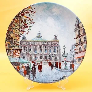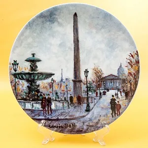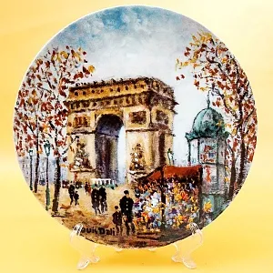 Оригинальная, Декоративная, Коллекционная, тарелка «Сад Тюлирьи и Арка Каррузель» - «Le Jardin Des Tuileries Et L'Arc De Triomphe Du Carrousel» из серии «Достопримечательности Парижа», Франция, Лимож, фабрика Henri D'Arceau & Fils, Серия производилась в период с 1980 по 1983 годы. Фарфор, деколь, ограниченный тираж. Художник Lois Dali.