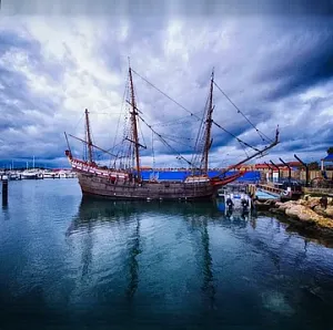 Оригинальная Декоративная Коллекционная тарелка - блюдо из серии «The Ships of Discovery» - «Великие Корабли Путешествий» - «DUYFKEN»— «ДЕЙФКЕН». Англия, мануфактура Royal Worcester, 1978 год. Фарфор, деколь, позолота, ограниченный тираж было выпущено всего 6000 экземпляров таких тарелок. Диаметр тарелки - 24 см.