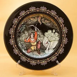 Оригинальная Декоративная Коллекционная Тарелка «Золотые рога» из серии "РУССКИЕ СКАЗКИ" — «Marchen aus dem Alten Russland» , Германия, 80-е годы ХХ века, мануфактура Heinrich Villeroy&Boch. Художник Gero Trauth. Фарфор, деколь, позолота. Ограниченный тираж - 19 900 экземпляров, безусловно, представляет коллекционный интерес.