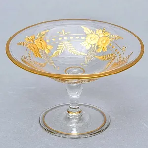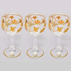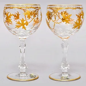 Фужер изготовлен из прозрачного хрусталя, это настоящий высококачественный свинцовый хрусталь с содержанием окиси свинца не менее 24% (PbO 24% - мировой стандарт), такое содержание окиси свинца увеличивает показатель преломления, что позволяет хрусталю играть всеми гранями на солнце подобно драгоценным камням. Купа декорирована гравировкой цветочной вязи опоясывающего бокал и расписанного золотом. Великолепная работа немецких мастеров, изысканный дизайн, высочайшее качество нанесение рисунка.