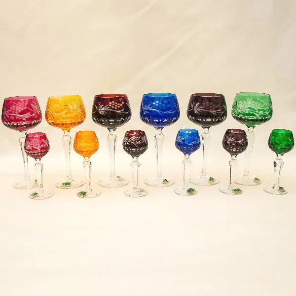 Представленный Вашему вниманию Набор роскошных бокалов и рюмок из цветного хрусталя, как раз и относится к периоду расцвета. Серия «Виноград», одна из самых красивых и традиционных для Европейских производств, но в исполнении стекольной мануфактуры Lauzrits получила свой шарм и очарование. Романтичные и очень милые, настоящий высококачественный свинцовый хрусталь с содержанием окиси свинца не менее 24% (PbO 24% - мировой стандарт), такое содержание окиси свинца увеличивает показатель преломления, что позволяет хрусталю играть всеми гранями на солнце подобно драгоценным камням. Великолепная работа немецких мастеров, изысканный дизайн, высочайшее качество нанесение рисунка граней. Классическая форма фужеров, подходит практически для любой сервировки стола, они станут его достойным украшением, всегда привлекут внимание окружающих.
