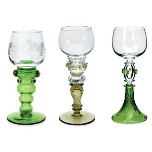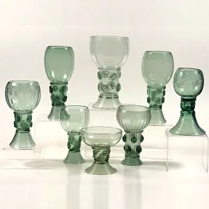 Роскошный Набор Стеклянных Бокалов для вина «Рёмеры» - элегантные посланцы немецкого стекольного мастерства ручной работы середины ХХ века, созданные для того, чтобы вдохновлять и восхищать. Западная Германия, мануфактура Theresienthal / Терезиентал - 50 -е годы прошлого века.