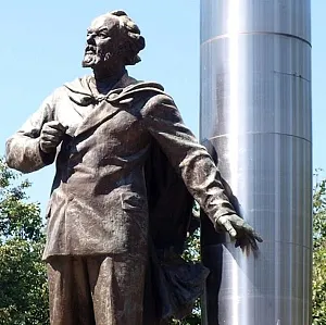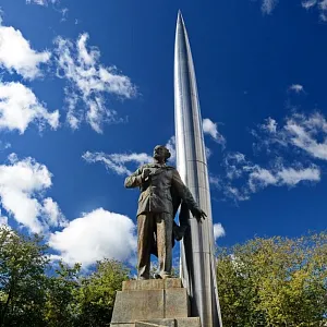 Шикарный, стильный и очень знаковый предмет!!! Сувенирная скульптурная группа включает отлитую из металла ракету по чертежам Циолковского и бронзовую скульптуру самого учёного стоящюю на постаменте. Символичная, технологичная композиция сморится очень эффектно и антуражно. Состояние для подобного предмета очень хорошее, без дефектов, сколов, трещин и глубоких потёртостей.