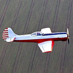 Композиция представляет собой динамичный скульптурный этюд. Ярко-красный фюзеляж самолёта с белоснежными полосами на крыльях и хвосте словно застыл в стремительном вираже, готовый взмыть ввысь. Детали проработаны с любовью: чёрный пропеллер с жёлтыми законцовками и голубой фонарь кабины пилота добавляют модели реалистичности. Самолёт покоится на изящной изогнутой стойке, имитирующей взлётную траекторию. Основание выполнено из тяжёлого металла с фактурной «кованой» поверхностью серебристого цвета, что придаёт предмету брутальную солидность. На передней части овального основания расположен шильдик с надписью «ЯК-18П».
