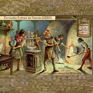 Каждый кубок украшен ручной росписью в характерном для того времени утончённом стиле напоминающем старинные гравюры, сочетающем элементы охотничьего мотива, фольклорного искусства и романтической природы. Центральный сюжет — рыцарь на коне, облачённый в богатую одежду, держащий в руке охотничью птицу. Его образ окружён символами лесной жизни: олени, охотники с собаками, стрелы, цветочные узоры и виноградные лозы. Вся композиция выполнены в глубоком, насыщенном зелёном цвете с чёрными контурами — цветах, которые ассоциируются с природой, древними традициями и благородным образом жизни. Дополнительная деталь — изящные орнаменты в виде завитков, цветов и листьев. Они сочетают в себе элементы народного искусства и аристократического вкуса, что делает их особенно ценными для ценителей аутентичного декора. В результате витринного хранения, несмотря на свой весьма почтенный возраст предметы находится в хорошем коллекционном состояние, без сколов и трещин.