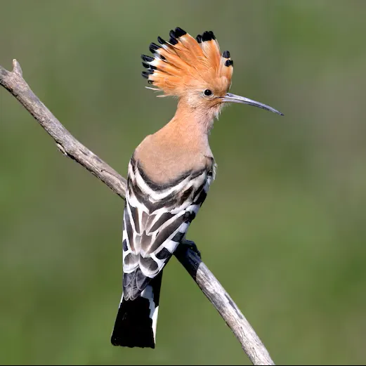 Удод — птица легенд. Говорят, он приносит мудрость тем, кто умеет слушать. Словно вышедший со страниц старинной иллюстрации, где каждая линия дышит тайной, он стоит на изящной ветке. Голова поднята не гордо, скорее, с лёгкой задумчивостью, будто он услышал шепот ветра или зов далёкого леса. Хохолок, расписанный в бело-жёлто-чёрную «огненную кайму», - символ солнечного света и тени лесной чащи. Розово-персиковая голова с едва заметным румянцем вокруг глаз — нежный розовый ореол, словно прикосновение утренней росы к лепестку. Шея — гладкая, изогнутая линия, переходящая в туловище с оттенками янтаря и меда, плавно переходящими в серебристо-серые крылья с тончайшими линиями и синими акцентами на кончиках. Основание — «кусочек леса», вылепленный из белого фарфора: изящная коряга с зелёными листочками.