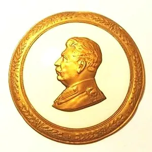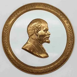Большая Агитационная Тарелка - Блюдо с Барельефом «Ленин и Сталин». Блюдо Фаянсовое, классической формы, большого диаметра - 35 см. Агитационный барельеф с изображением Советских вождей, выполнен из металла, литьё, окрашен позолотой. Предмет родом из СССР - Знаменитый ЗиК Конаково ( завод имени М.И. Калинина), клеймо - 50 -х годов, очень РЕДКО встречается(настоящая находка для коллекционера)! Производилась по госзаказу, небольшим тиражом и предназначалась, как подарочный - наградной фонд для поощрения за выдающиеся заслуги. Великолепный памятный подарок !!! Атрибут СОВЕТСКОЙ ЭПОХИ !!!