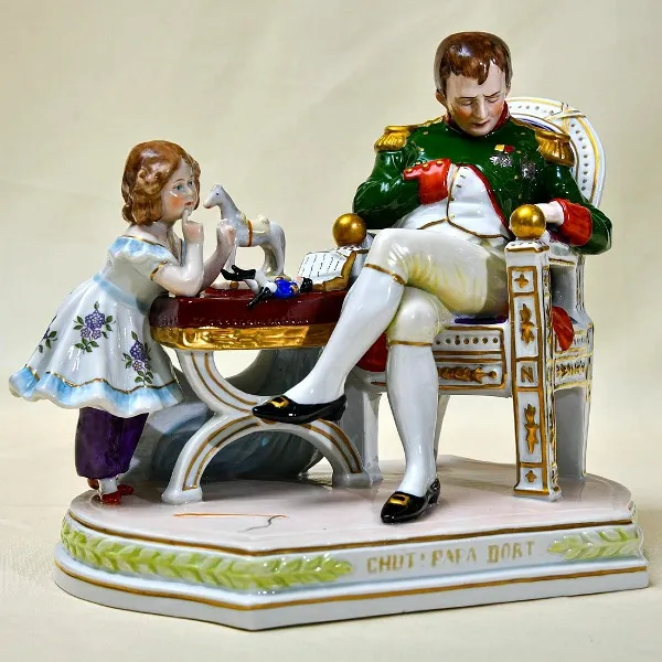 Редкая Коллекционная фарфоровая статуэтка из серии французские военачальники эпохи Наполеона - «Жан Ланн» - «LANNES», Германия, мануфактура Scheibe - Alsbach, серия была изготовлена в начале 60 -х годов прошлого века и была посвящена 150 летию самым знаменитым сражениям Наполеоновской армии. Фарфор, полихромная роспись, позолота. На дне основания каждой статуэтки кроме клейма производителя, присутствует тиснение на тесте - краткая биография каждого маршала.