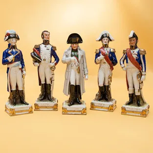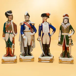 Редкая Коллекционная фарфоровая статуэтка солдата из серии французские военачальники эпохи Наполеона - «Мюрат Иоахим» - «MURAT», Германия, мануфактура Scheibe - Alsbach, серия была изготовлена в начале 60 -х годов прошлого века и была посвящена 150 летию самым знаменитым сражениям Наполеоновской армии. Фарфор, полихромная роспись, позолота. На дне основания каждой статуэтки кроме клейма производителя присутствует тиснение на тесте - краткая биография каждого маршала. Высота фигурки - 25 см.