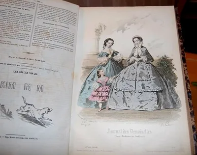Винтажная Картина - Панно "Дамы у пруда", колорированная репринтная (перепечатанная офсетным способом) гравюра под стеклом. Изготовлена во Франции. Одна из серии гравюр Magasin Des Demoiselles с изображением мод XIX века.